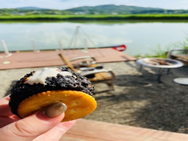 焼いたマシュマロを「リッツ」などのクラッカーでサンド。さっくり、甘じょっぱくて美味しいですよ!マシュマロにチョコレートを追加すれば、「チョコレートスモア」のできあがり。
