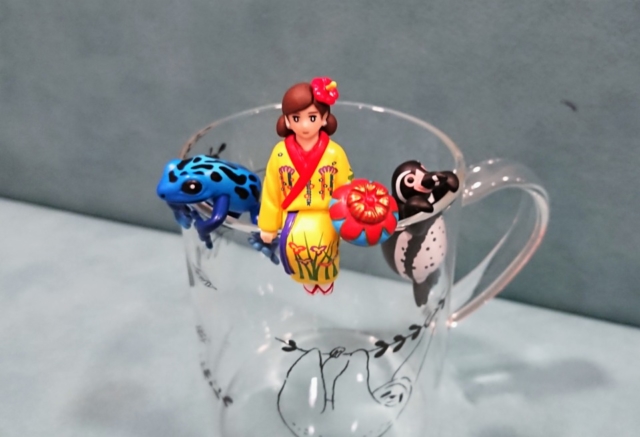 ぬいぐるみの他に人気があるのが、DMMかりゆし水族館限定バージョン の「コップのフチ子さん」。ガチャガチャなので何が出てくるかわかりませんが、フチ子さん以外でもかわいい水族館の生き物のフィギュアが手に入ります(1回400円)。