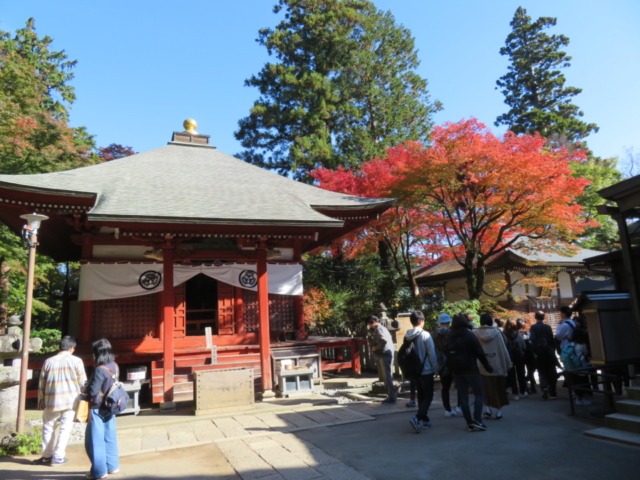 御本堂を囲む境内も季節の彩りで満ち溢れ、御本堂の東の鐘楼堂や、その北に建立された大師堂も、秋には季節の化粧をまとって美しい姿に。