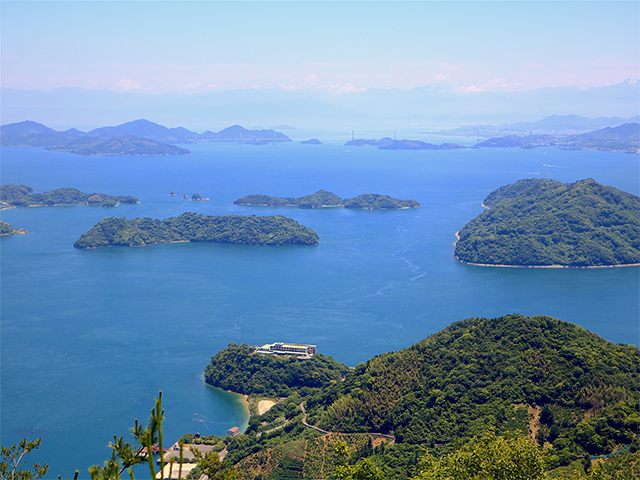 瀬戸内は海のイメージが強いものの、意外と山がちな離島群。島の高台を目指してみれば、絶景の展望台に出会えることもあります。