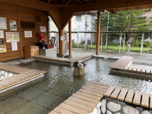 旅の最後は温泉でほっとひといき。15:05大内宿発のバス「猿游号」で、湯野上温泉駅に戻ります。