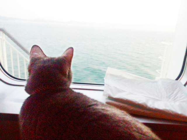 夜が明け始めた頃に船が通過した瀬戸大橋の下では、猫たちが皆で船窓に張り付いて目を見開きながら、巨大な橋を見上げていて可愛かった。