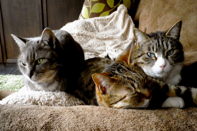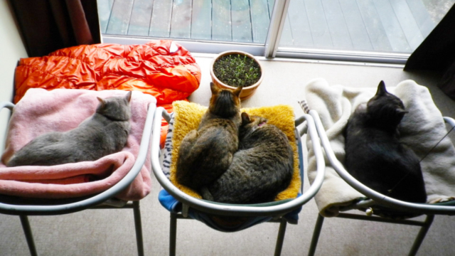 日に日にくつろぎ始めた猫たち。適応性は人間以上。