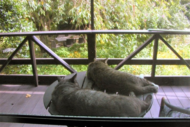 彼らは日がな一日彼らの好きなように暮らし、僕たち夫婦も彼らに合わせることなく僕たちのペースで暮らしている。僕たちは仕事をし、買い物に行き、天気の良い日は庭で昼ご飯を食べる。そんなとき、ゴーシュの弾くセロを聴こうと集まってくる動物たちのように、我が家の猫たちもランチのお裾分けにあやかろうとテーブルの周りを囲んで待っている。