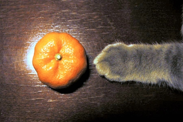 卓の上に庭でとれたミカンがのっている。もう10日ぐらいは置きっ放しになっていると思う。
