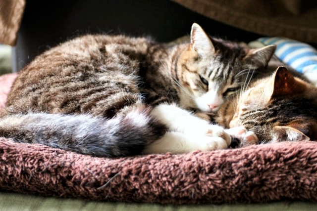 9歳になった今でも血の繋がったくつしたとしましまは、いつでも必ず一緒に寝ます。