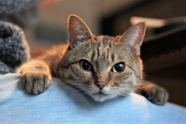 出会いから9か月後、初めて体に触らせてくれたしましま。末娘の三女としてうちの家族になりました。