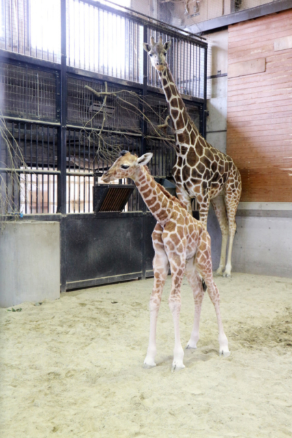 現生動物では一番背が高く、大人のオスは5m以上にもなるというキリン。今回生まれた赤ちゃんも、生まれた時から既に身長が180cmもあったのだとか。3月初めの検診ではさらに身長が190cmに伸びていたとのこと。生まれてすぐに長い脚でスタスタ歩き始めたという元気な赤ちゃんキリン、すくすく成長しています。