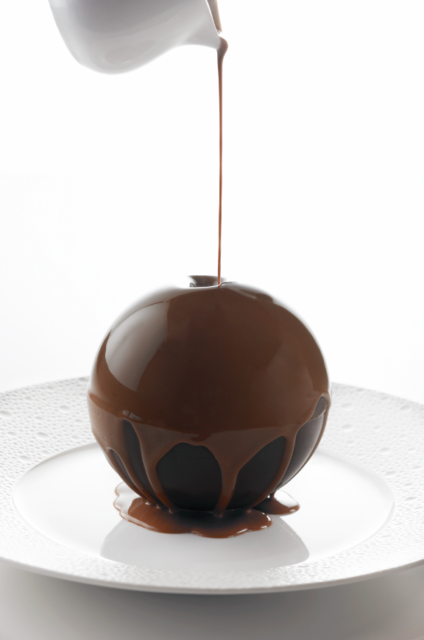 「Heaven」でぜひ体験してほしいのは、球体のチョコレートにホットチョコレートをかけて仕上げる「サンサシオン」。とろとろとチョコレートが溶けてゆき、中のアイスクリームやサブレと一体となるライブ感が楽しめる、贅沢デザートです。