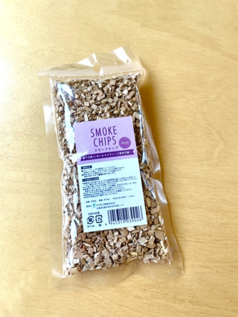 レシピ⑧のホットケーキ同様、今回も網を使用します。また燻製用にチップ(ダイソーでも売られています)も使用します。