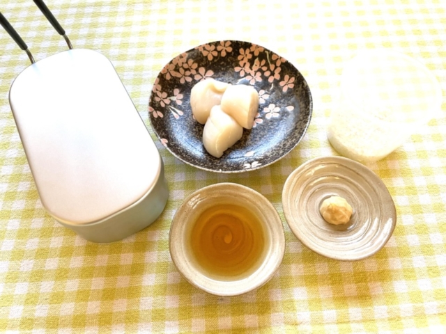 ※キャンプの前日の夜にゆで卵をタレ(醤油、みりん、白だしを鍋で一煮立ちさせたもの)に漬け込んでおきます