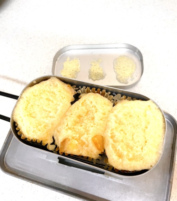 メスティンで作るホットケーキは、フワフワの蒸しパンのような出来でした。