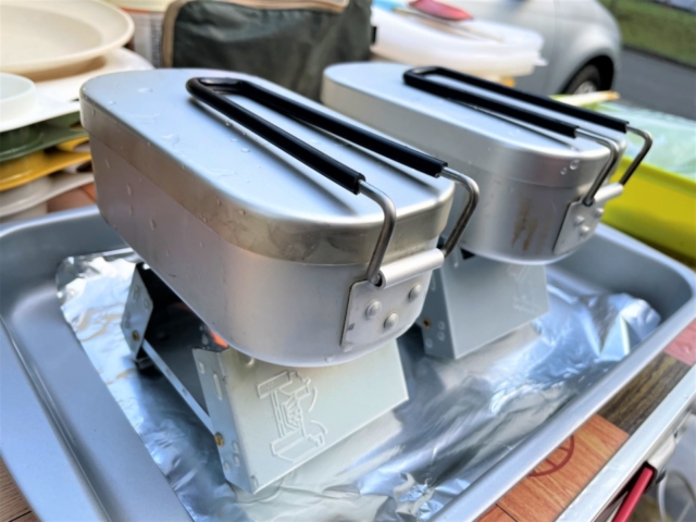 メスティンとミニストーブ(または五徳)が複数ある場合、主食とスープを同時調理することをオススメします。