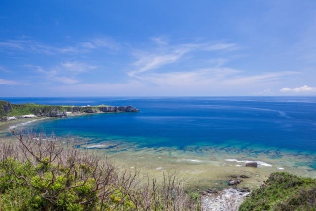 - 【沖縄やんばるドライブ】断崖から青く澄んだサンゴ礁の海が眼下に広がる「茅打バンタ」