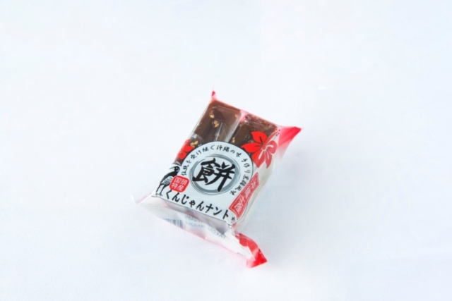 くんじゃんナントゥ(2個入り)230円。餅粉に黒糖としょうがを混ぜて作った甘さひかえめの餅菓子