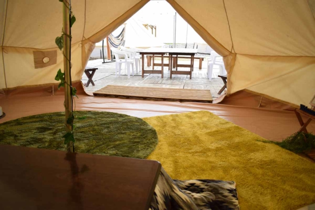 喧噪から離れたテントの中は非日常なおしゃれ空間