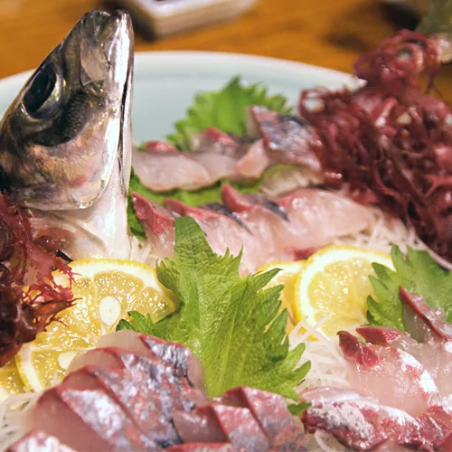 関あじや関さばの活き造りは、鯛やヒラメに勝る逸品としてグルメの間で定評があります。