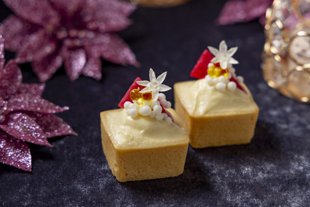 手に取るたびに心が躍るスイーツたちは、まさにお気に入りのジュエリーを選んでいるときのよう。東京湾や浜離宮恩賜庭園を眼下に望む洗練された空間で、優美な冬のひとときを過ごせます。