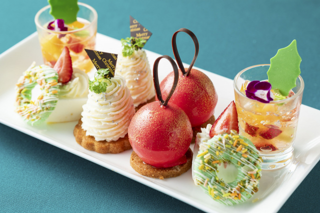 街中が光り輝く冬のイルミネーションの点灯が待ち遠しい時季に、クリスマスのティータイムを全9種類のスイーツやセイボリーがカラフルに演出するアフタヌーンティーです。