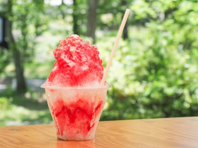 このあたりは真夏でも木陰に入るとひんやり。木陰でかき氷を食べてひと休みしましょう。