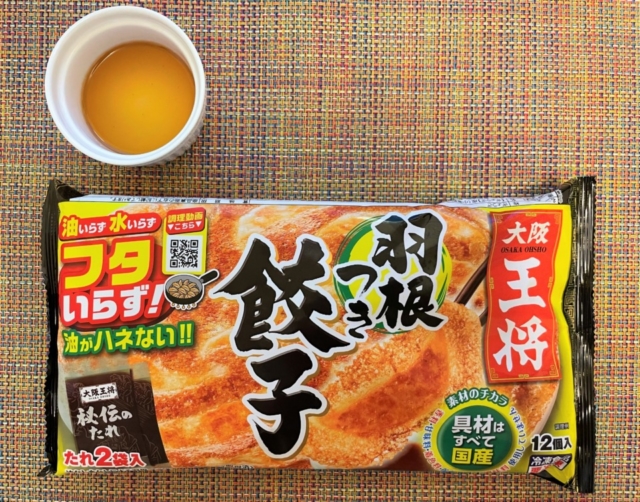 スキレットの保温性を生かして、パリパリに焼いた餃子を最後までホカホカの状態で食べる贅沢な気分を味わいましょう。冷凍餃子でもチルドの餃子でも手作り餃子でもお好みで選んでください。今回は“餃子の王将”の冷凍食品を選びました。こちら、油要らず水要らずとなっているのですが、油を引かないと確実にこびりつくので、油は引きました。