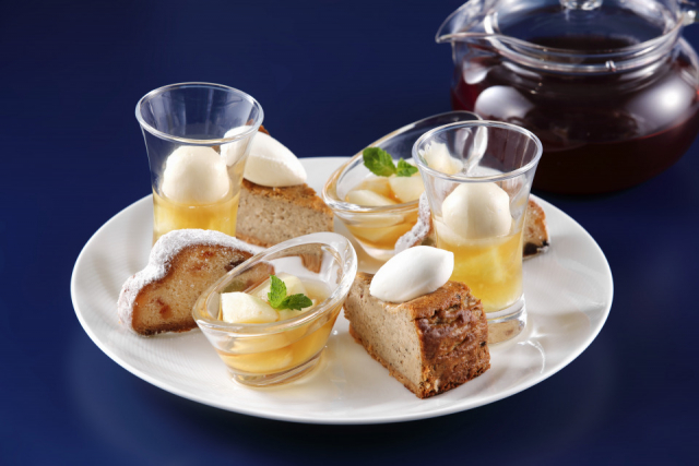 ドイツのシュバルツヴァルト(黒い森)を模したシュバルツヴェルダー・キルシュトルテやクリスマスシーズンのシュトレンとはひと味違う夏の果実を用いた爽やかな味わいのサマーシュトレンなど、ドイツの伝統菓子を取り入れ、シェフの創作デザートにロンネフェルトティーを掛け合せたオリジナリティあふれるアフタヌーンティーです。