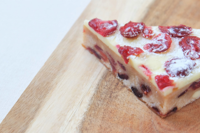 三つ目のおすすめフードメニューは、ホリデーシーズンに欠かせない、スタバのクリスマス ブレンドと相性ぴったりの焼き菓子「クランベリーブリスバー」です。