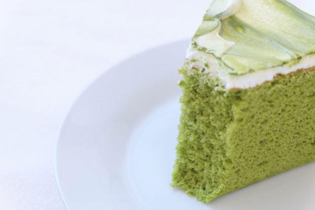 もっちりとした弾力としっとりした食感のさくらシフォンの生地に桜葉のパウダーを練り込み、天面に塩漬けの桜花をトッピング。塩味がアクセントになり、最後の一口まで桜風味を楽しめます。