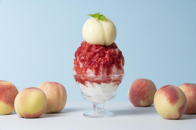 また、夏限定のかき氷も毎年のお楽しみです。特にこちらの桃のかき氷は完熟の桃がまるごと1個のった人気メニュー。果実園ならではの最高の状態の桃がいただけます。