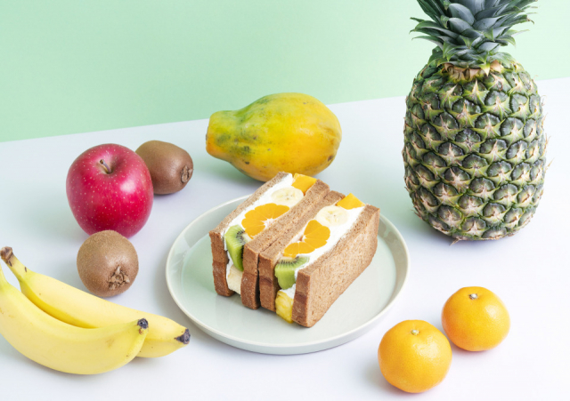 旬の温州ミカンをはじめ、数種類の果物がぎっしりサンドされています