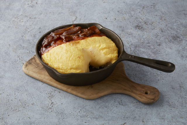 卵をしっかり泡立てたスフレ状のオムレツがのったオムライスはふわしゅわ食感です