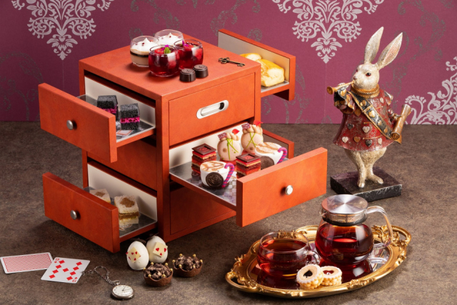 引き出しの中にはアリスの世界観を表現したスイーツがぎっしり(2021年12月26日まで)