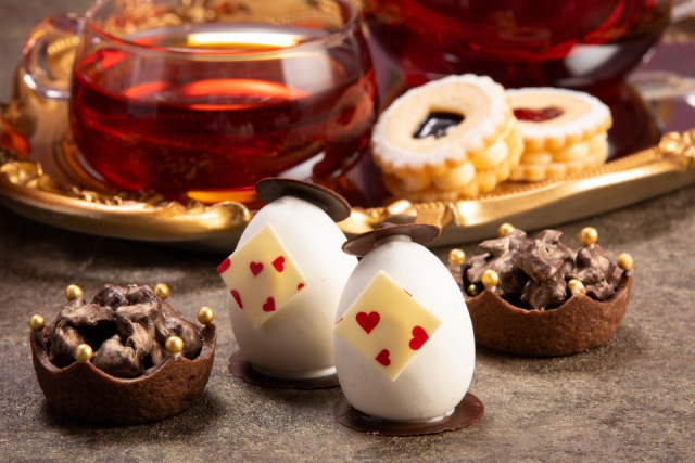王冠のチョコやトランプ柄のクッキーなど物語のエピソードを思い出させてくれます