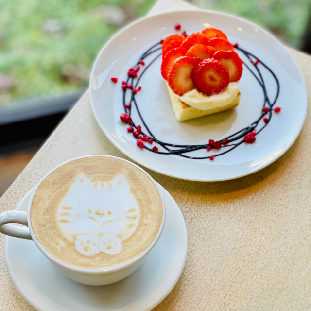 カフェタイムは、バリスタが淹れる本格的なカフェラテを。キュートなラテアートにも癒やされます。