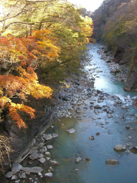 トンネルを抜けると、赤の鮮やかなトラス橋を渡り、漆山第2トンネル(285m)へ突入する。この、目まぐるしいスペクタクルな展開!興奮のうちに折り返し地点の二ッ屋に着く。なお、渓谷コースは2人からの利用となる。