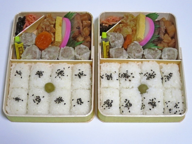 まねき食品の公式サイトによると、上折におかず、下折に白飯を詰めた二重の折詰で、当時お米が一升6銭の時代に、12銭で販売したそうです。かなり高価なお弁当だったのですね。
