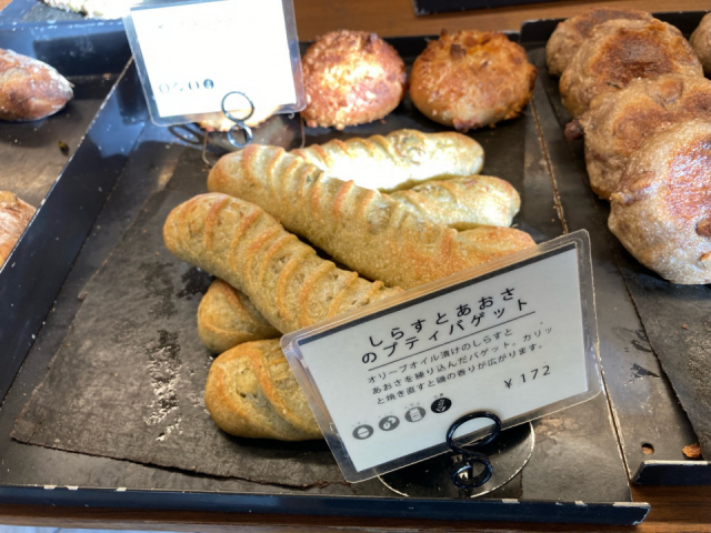素材の組み合わせが珍しいパンが目白押し。しらすとあおさのプティバケットは、食感も味の深さも格別で、酒粕を使ったパン「パン ミヤッコ」のパン生地は優しい甘さにうっとりするほど。