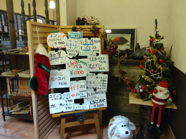 入口付近には、「イチゴスパ」など、お店いち押しのメニューが掲示されている
