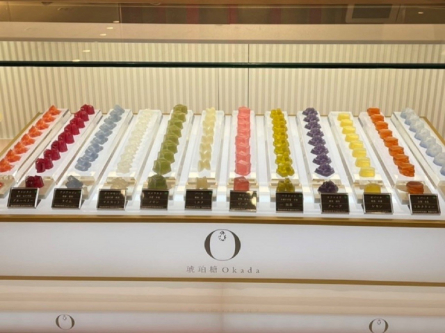 大阪一のおしゃれデパート「阪急うめだ本店」。2021年10月、地下1階の和菓子売り場にオープンしたのが「琥珀糖Okada(こはくとう おかだ)」です。