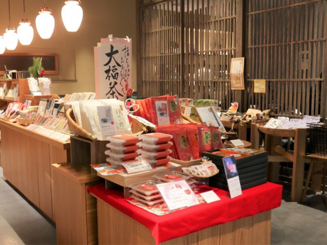 南海難波駅からすぐのショッピング施設「なんばスカイオ」にありながら、都会の中で静寂を味わえるお店。堺の伝統の堺格子、灰色の漆喰の壁で作られた店内は音楽が流れて風流な空間。ほうじ茶の香りの香ばしい店頭で、ゆったりと手土産を選んでみてください。