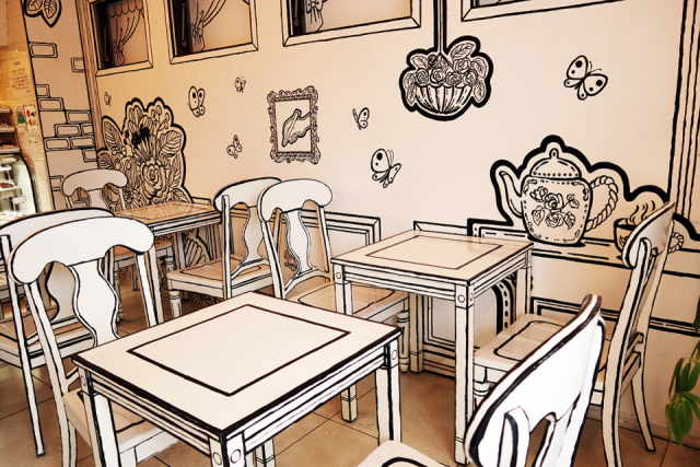 9.新大久保で白黒の絵本の中に迷い込んだような世界観を満喫できるカフェ「2D CAFE」