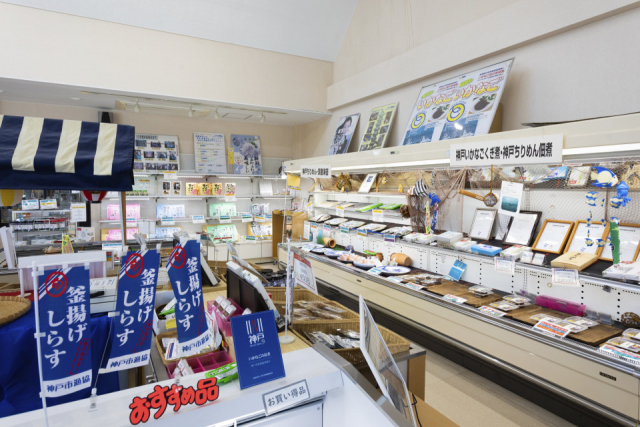 垂水漁港内にある直売所で、漁港で水揚げされた海鮮を使った加工品が豊富に並びます。3~5月はいかなご、5~12月はちりめん、1~4月には海苔など、旬を感じるラインナップで訪れるたびに発見があります。4~12月の土曜には活魚を販売する「土曜市」も開催され盛況です。