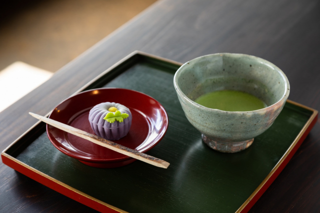 舎守(やもり)の堀アスカさんのアドバイスのもと、抹茶点て体験ができます。一服目は舎守によるテーブル茶道を見学し、二服目は盆点てで、自分で抹茶を点てます。もちろん喫茶のみの体験もOKです。