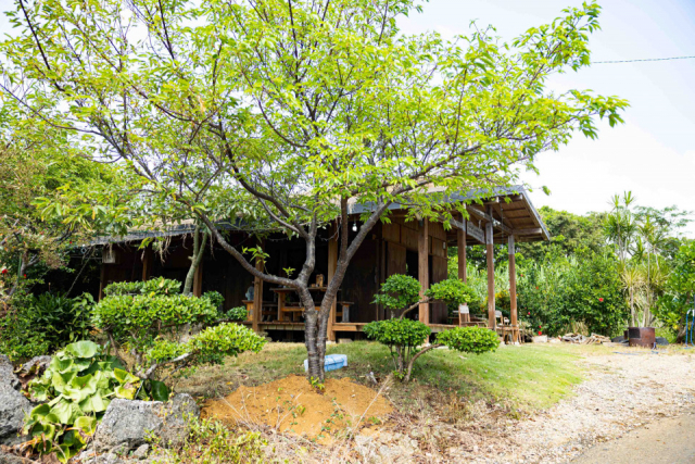 阿権集落の民家の庭先に立つガジュマルの巨木。島内随一の規模を誇り、樹齢は300年を超えるそう。ケンムン(精霊)が宿るともいわれ、あたり一帯には神秘的な雰囲気が漂います。