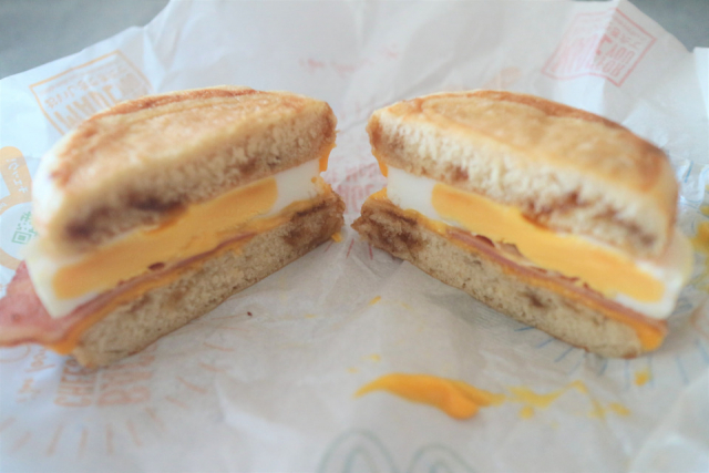 朝マックの中で最も食べごたえのあるメニューといえるでしょう。他のメニューとの差別化が図られているのか、さりげなくケチャップが入っており、味にインパクトが追加されています。