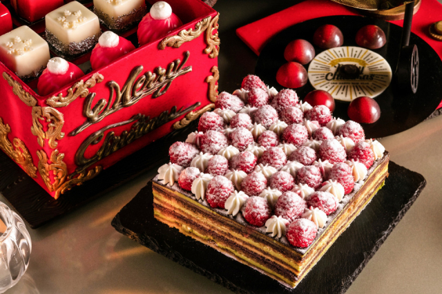 スイスの老舗チョコレートメーカー「フェルクリン社」のチョコレートを使用した優しい甘さのムースとベリーの甘酸っぱい酸味が特徴です。クリスマスのテーブルを華やかに彩る一品。