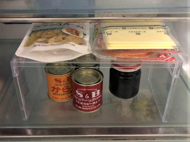 調味料や小瓶のほかに、パッケージの帯をはずした納豆やハーフサイズの豆腐の保存にも適しています。