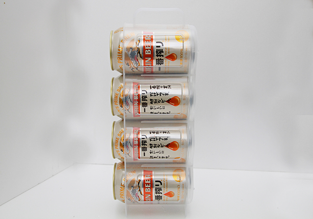 この缶ストッカーは、350mlの缶が4本収納できます。大きめの取っ手が付いていて、握りやすい作りになっています。