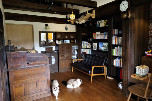 ご主人が生まれ育った集落で空き家となっていた築100年の古民家を再生し、自宅兼「猫が遊びにくる小さなカフェ」に。