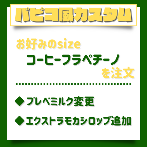 スタバのおすすめカスタムランキング第8位は、コーヒーフラペチーノの「パピコ風カスタム」です。